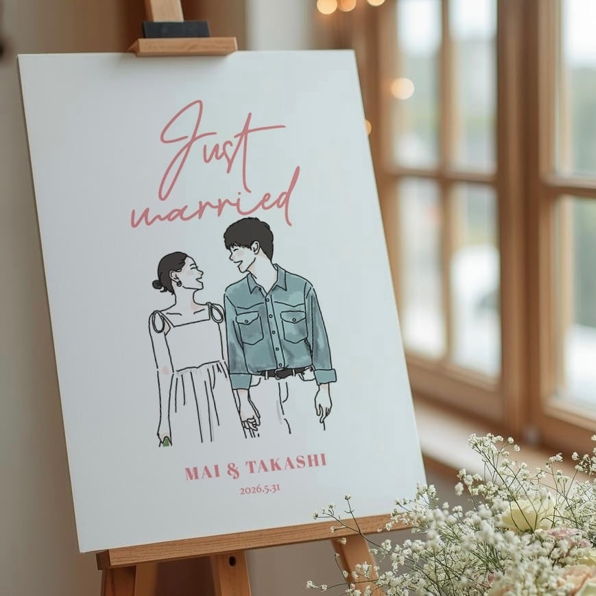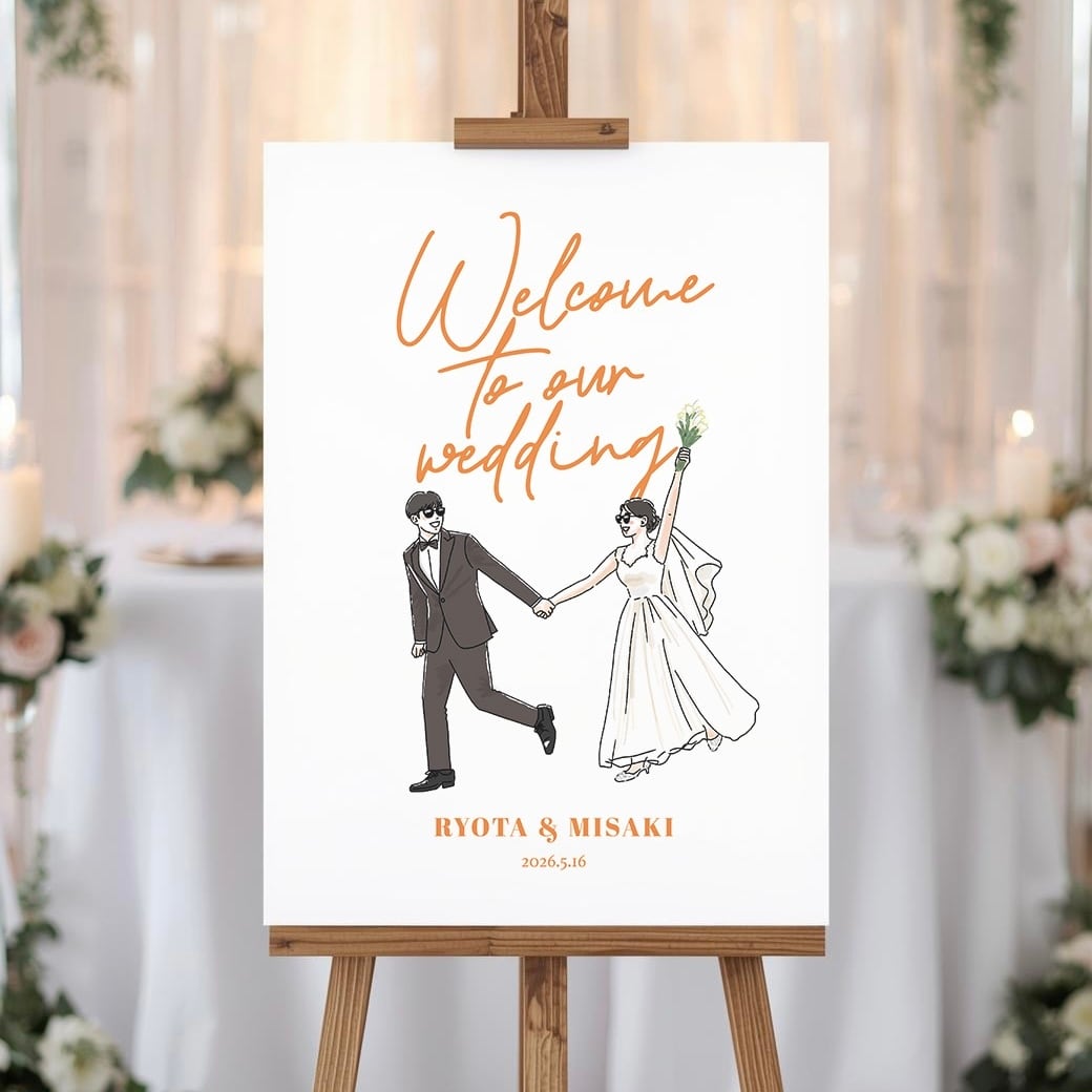 ウェルカムボード イラスト カジュアル 似顔絵 ウェディング 結婚式 おしゃれ データ付き キャンバス パネル ポスター