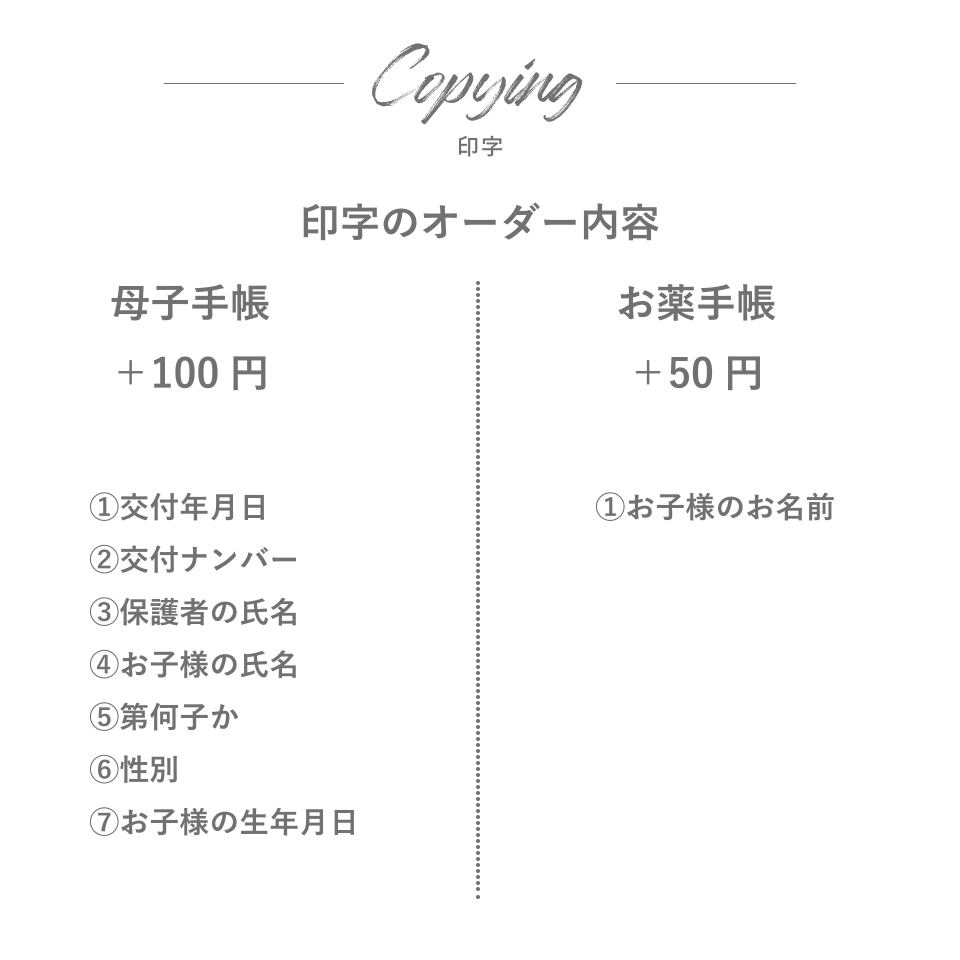 ◆母子手帳カバーの印字内容